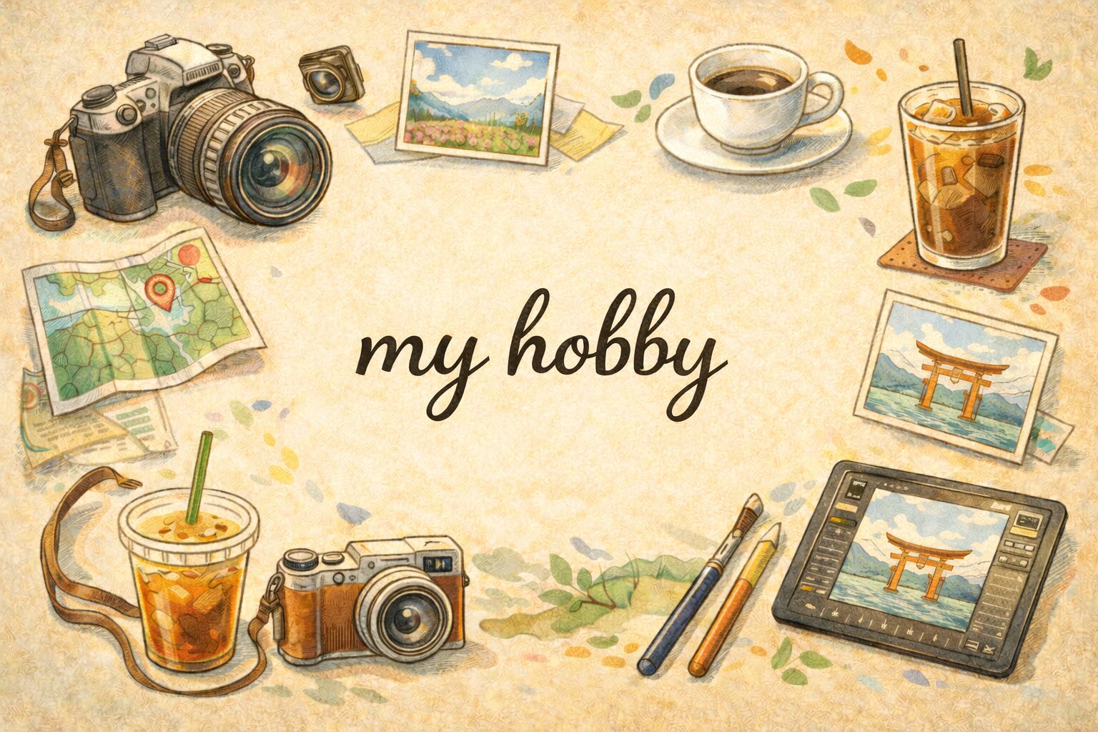 趣味といえる程のことではないですが、休日は行き当たりばったりのお出かけをして写真を撮ったり、カフェに行ったりしてます。