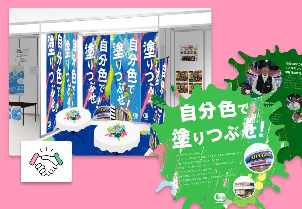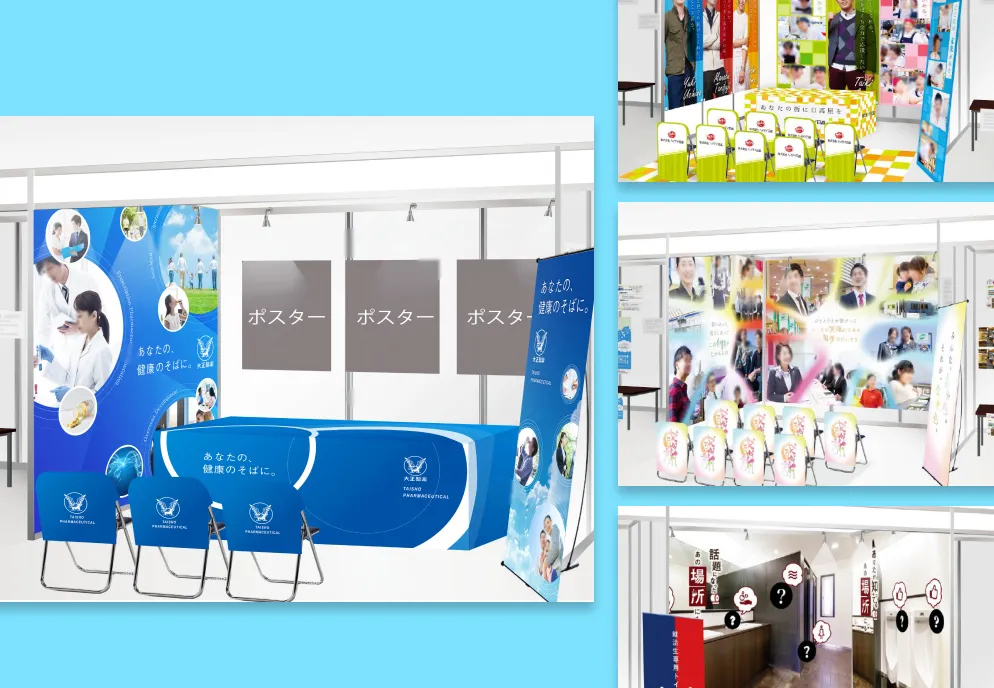 視覚的に魅力的なブース装飾で、来場者の目を引き、貴社に興味を持ってもらえるようサポートします。特に求職者に向けたメッセージを、インパクトあるデザインで伝え、集客効果を高めます。