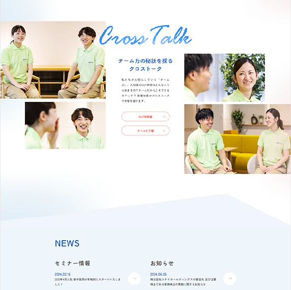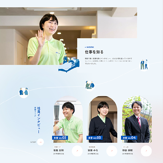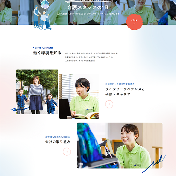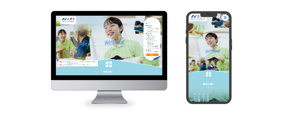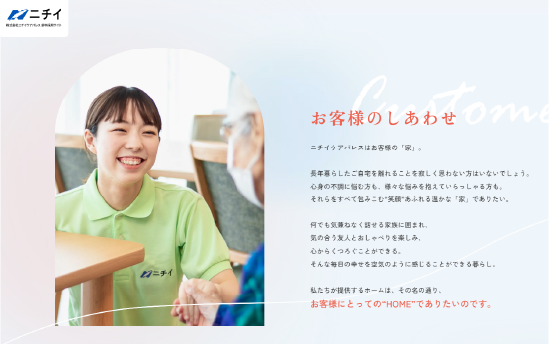 「HOME」で働く職員の皆さんが、仲間やお客様と触れ合う中で見せる“笑顔”や“幸せ”の瞬間を切り取り、その温もりが伝わるようなサイトを目指しました。